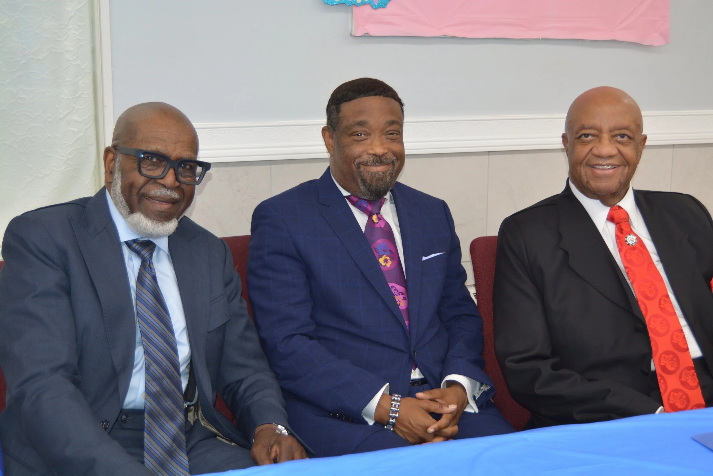 Dr. John Williams pastors at Memorial Baptist Church, located at 770 Humboldt. Dr. Williams celebrated this joyous occasion in early June. Pictured, left-to-right: Reverend Charles Henderson, Reverend Milton French, and Dr. John Williams.