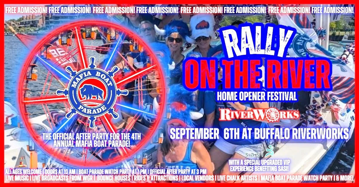 Buffalo, NY - Get ready to kick off the Bills season in style. The Rally on the River: Home Opener Festival is back at Buffalo RiverWorks on Saturday, Sept. 6, from 10 a.m. to 6 p.m. This year, the festival is proud to be the official after-party for the 4th Annual Mafia Boat Parade.
