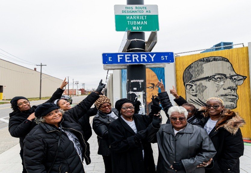 Because of her courageous contributions to humanity and her race, Harriet Tubman is prominently honored throughout Buffalo. She is featured on the E. Ferry & Michigan Street Wall along with other local freedom fighters. The street signage outside The Wall designates Michigan Avenue and E. Ferry as Harriet Tubman Way; the plaque at the entrance of Freedom Park, the mural under the Michigan Street bridge, the footprints on Michigan Avenue, and signage outside the Michigan Avenue Baptist Church are all examples of community initiatives supported by the Harriet Tubman 300’s. The ladies often table at local cultural events sharing literature about Harriet Tubman, the history of the Underground Railroad and the significance of Buffalo, New York being the last stop on The Underground Railroad for slaves seeking freedom in Canada.